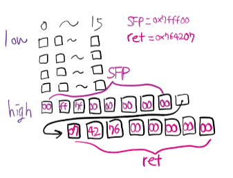 index 14, index 15 = ret 하위 4바이트, ret 상위 4바이트
