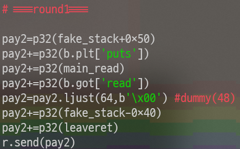 pay3+=p64(0x12341234) # system 다음 리턴주소