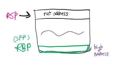 mov rsp, rbp 으로 SFP(호출 전 RBP의 값) 를 가리키는 RBP 를 RSP 에 넣고