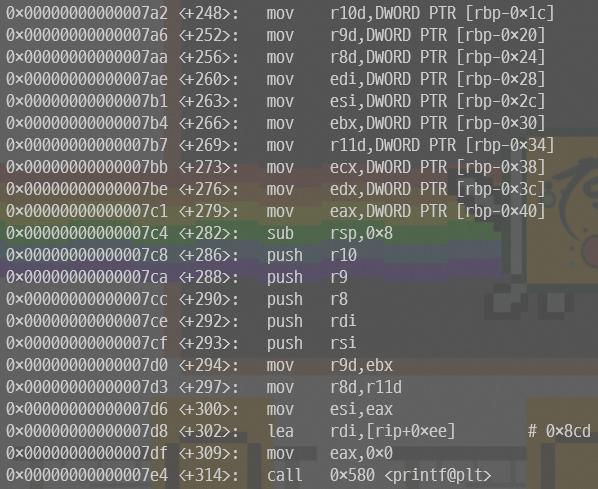 0x00000000000006dd <+51>: call 0x570 <printf@plt>