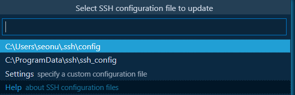 ssh configuration file 을 선택해 원격서버를 추가합시다