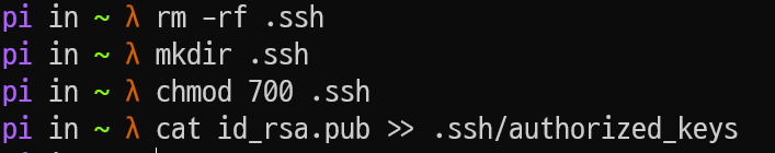 위 명령어를 차례대로 입력해 authorized_keys 에 공개키를 추가합시다.